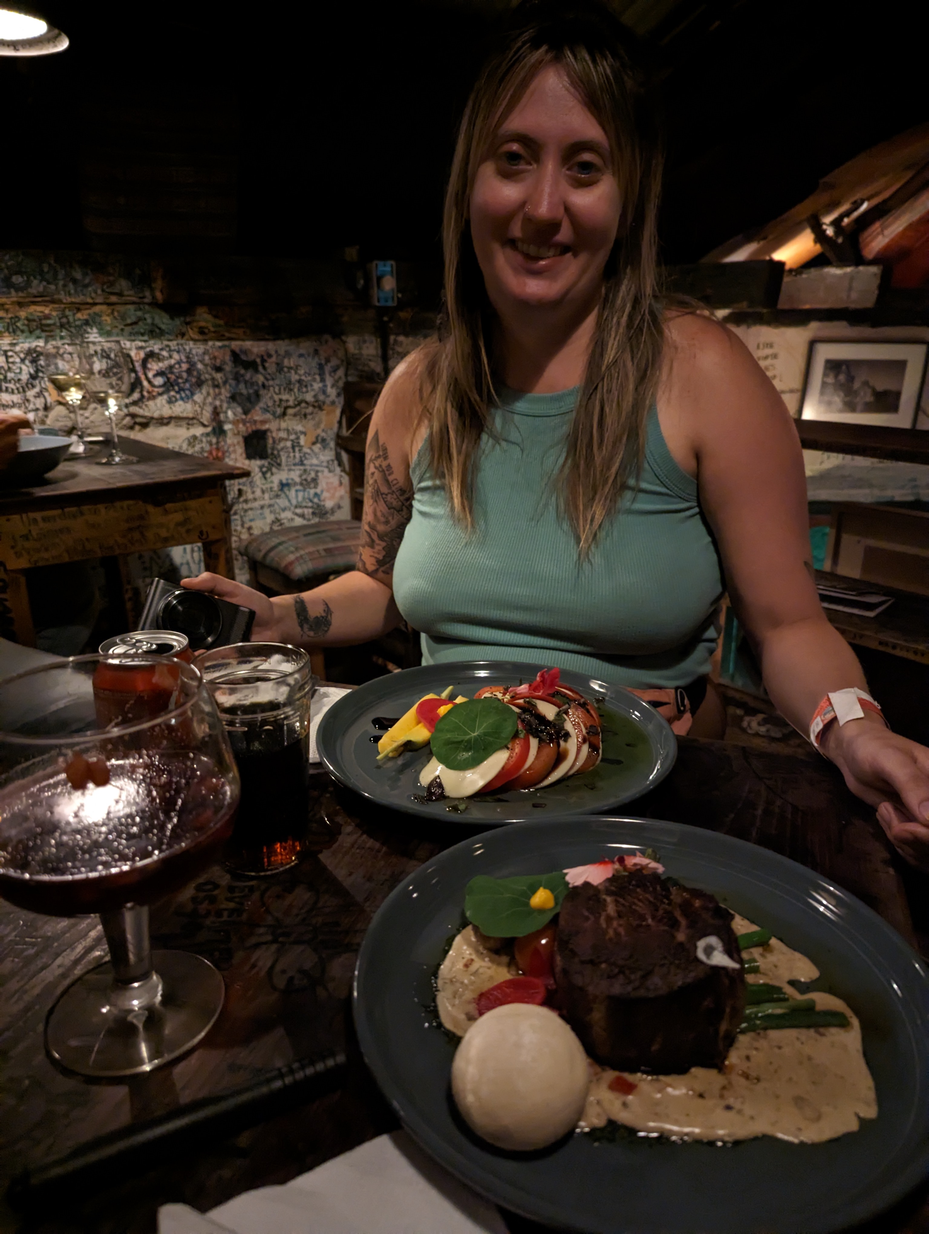 Hopes dashed, I awake to the posh girls describing how hungover they are, suspecting by their volume that they are not actually hungover and have likely never been truly hungover. Not one part of my body works properly, and I also suspect I’m coming down with a cold. Or maybe having just had the two hardest days of your life and then being unable to sleep due to a rave right outside your door feels like a cold. Regardless I am slow moving, and Megan is slower. It is our last full day in Antigua, so we try and make a go of it. We make it out for breakfast at wonderful little cafe in the center of the city with a small courtyard in its center where we order way too much food and as much coffee as they can legally give me. Afterwards we walk around the central plaza and try and visit a brewery but only one beer in it is clear our hearts aren’t truly in it and our legs are launching fervent protests so we return to the hostel. The posh girls are still hanging around the room. In the evening I convince Megan to accompany me to a hipster type joint called ¿Por Que No? that has graffiti’d walls and an upstairs reached only by ladder, where the lady insists we sit to get the full experience despite us equally trying to insist that we are fine on the bottom level thanks. Her enthusiasm wins out and we climb the ladder. The food is phenomenal and the sangria good and traditional6 and I begin to think that maybe Acatenango has not killed me. On the way back to the hostel I have to hop on a curb quickly due to a car and my knees buckle and legs collapse and I realize I was wrong.
