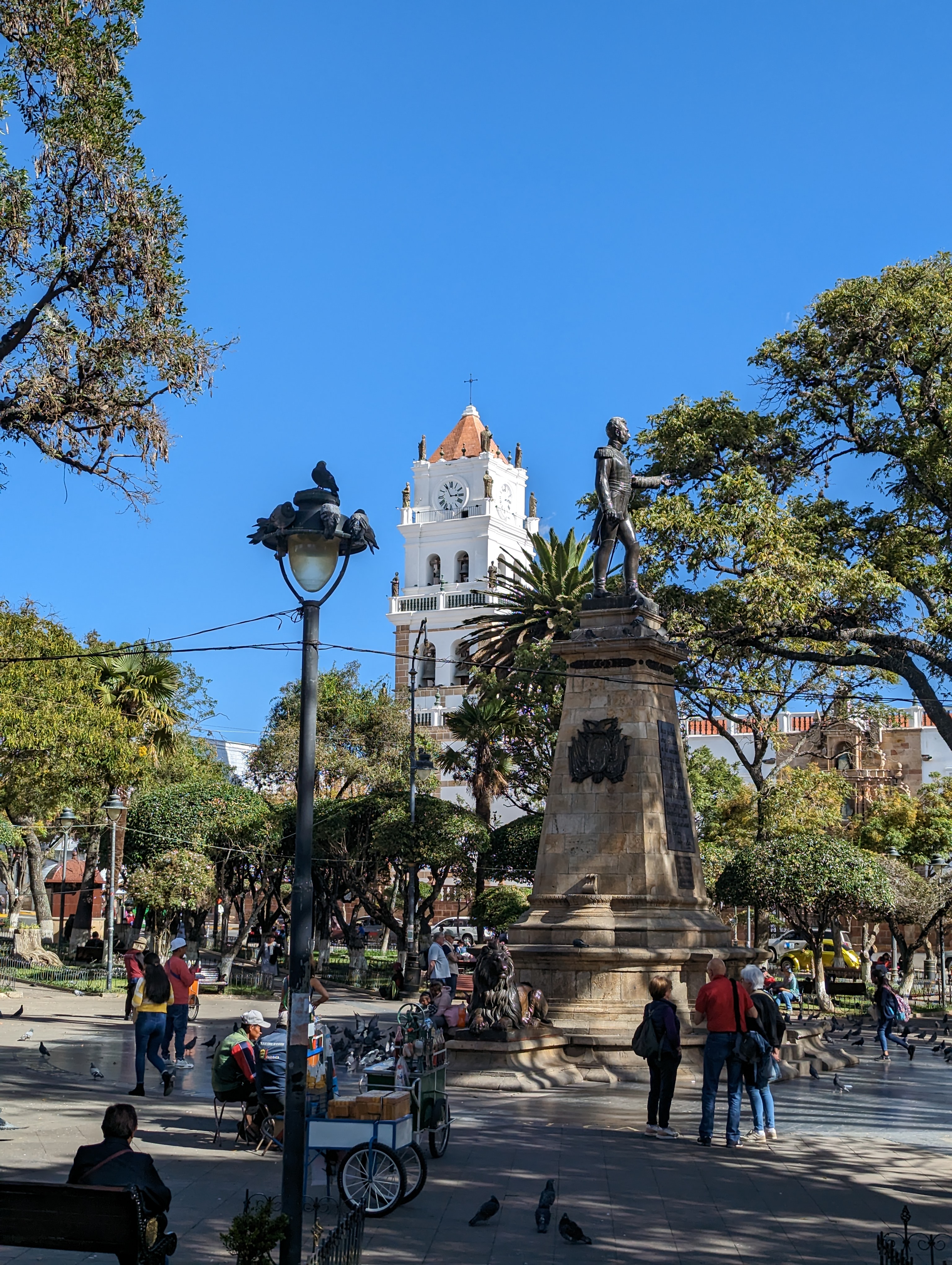 Sucre fortunately was made for the weary traveler. A bright and sunny 75 degrees every day, comparatively flat,14 and gorgeous. Sucre, as everyone will tell you, is the capital of Bolivia. It is an old city, founded in the 1500s, and has meticulously maintained its colonial architecture, going so far as to offer a tax break to those who keep their businesses and homes painted white. It sits on a classic Spanish grid system, with the provincial feeling Plaza de 26 de Mayo at its center, surrounded by old cathedrals, government palaces, and the home of the first congress and constitution. It is a place that can only truly be appreciated on foot, an aimless meander constantly revealing a new plaza, a new cafe, and another imposing church facade. What it never reveals is a Starbucks, McDonald’s, or 7/11, a welcome deviation from the similarly colonial but vastly more commercialized Antigua, Guatemala.15 It is also the best place in Bolivia to take Spanish lessons.